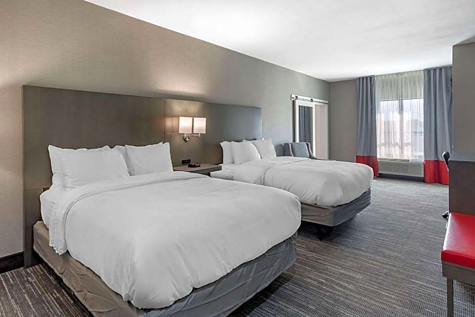 Room choices span several configurations: a King Room at 301 square feet, a Suite (King) at 398 square feet, and rooms with two Queen beds at 398 square feet. Each option offers a comfortable layout designed for relaxing after a day of exploring, meetings, or road trips.
